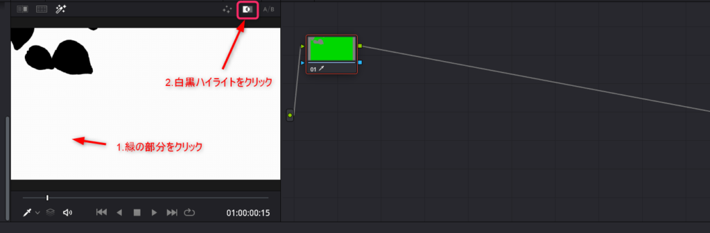 黒スクリーン、白スクリーンの値を変えはっきり区別がつくような設定にする。
