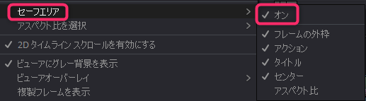 エディット操作画面にて、タイムラインにタイトルを入れた場合など表示エリアの線を表示させる。
